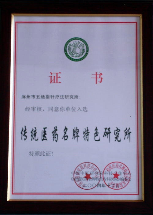 涿州市五绝指针疗法研究所入选传统医药名牌特色专科研究所